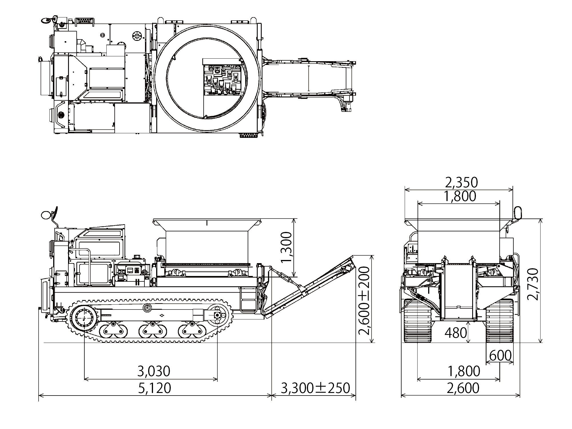 | ホッパー寸法 | 投入口(外径/内径) | 2,350 / 1,800mm |