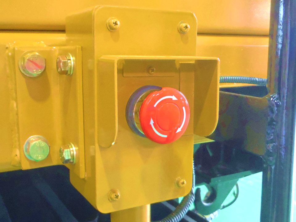 運転席と車両の左右側面、計3カ所に破砕・走行等全ての動きをストップさせる、緊急停止スイッチを設けています。