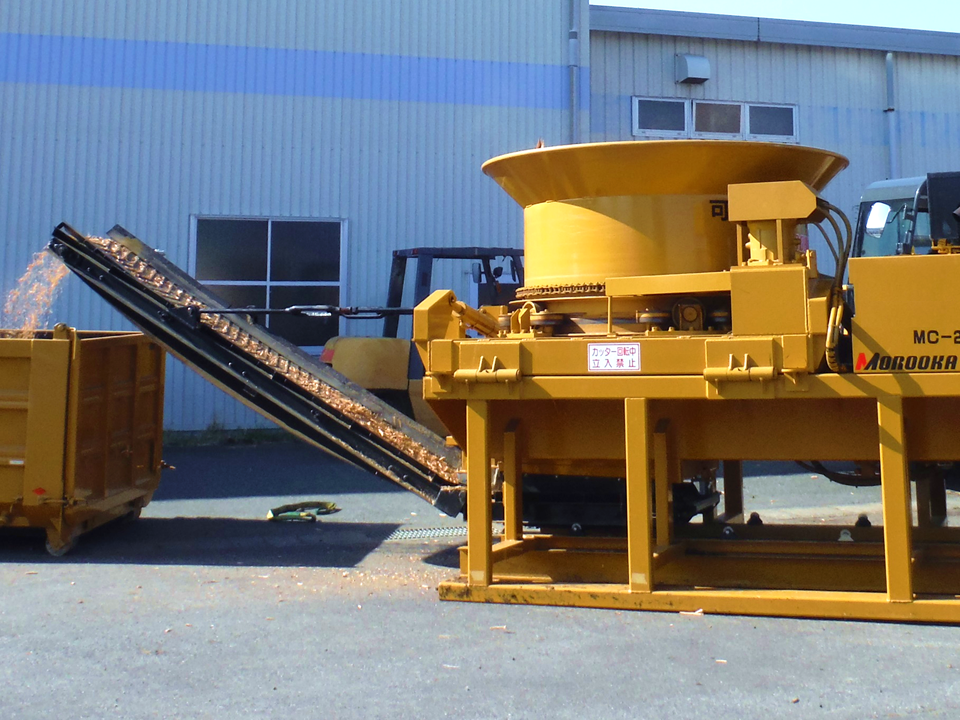 MC-2500Tは定置式の木材破砕機です。アームロールを使用することで簡単に移動、運搬を行え、トラックへ積載することもできます。
