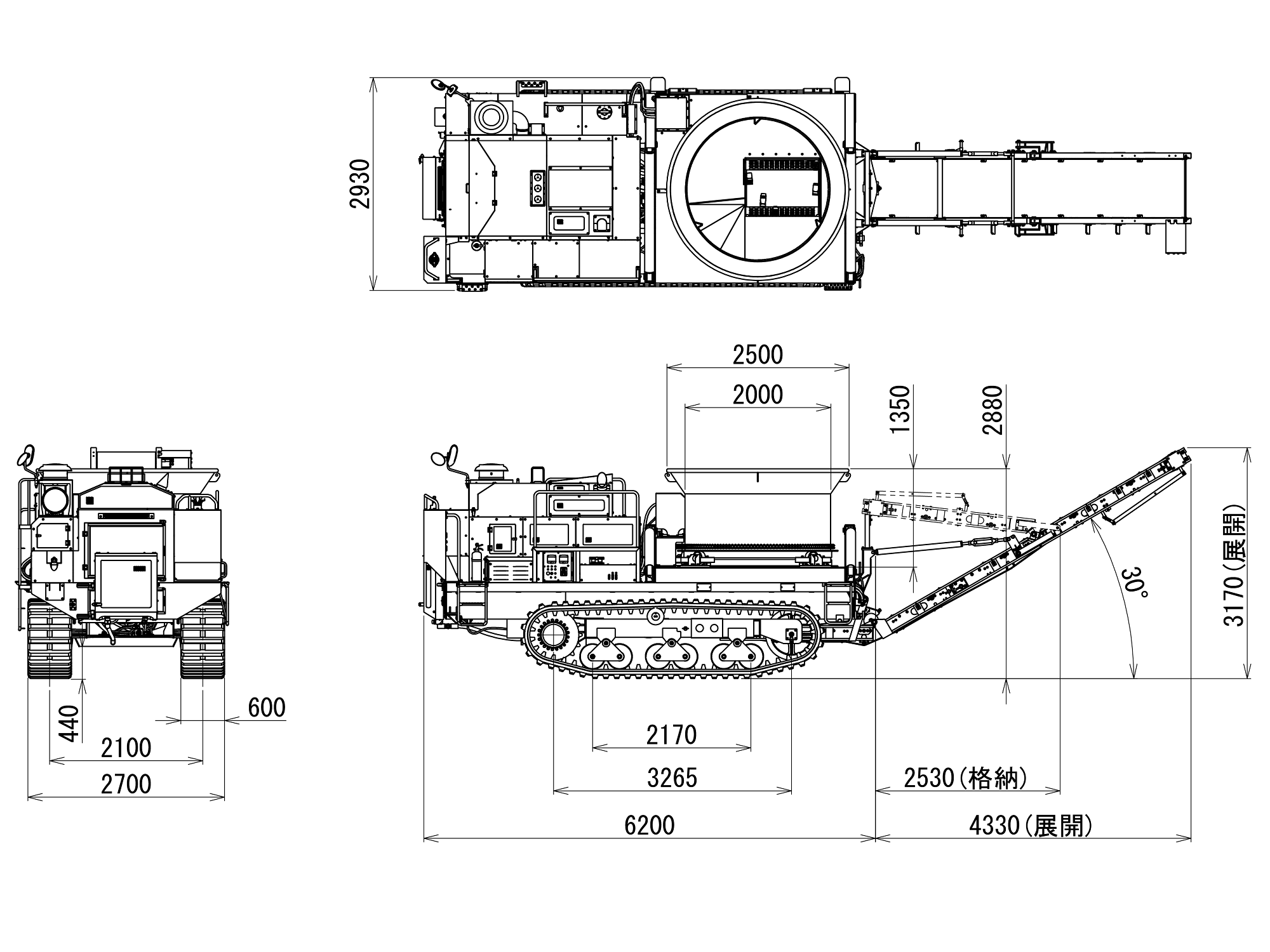 | ホッパー寸法 | 投入口(外径/内径) | 2,500 / 2,000mm |
