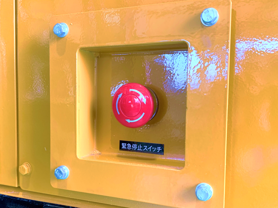 運転席と車両の左右側面、計3カ所に破砕・走行等全ての動きをストップさせる、緊急停止スイッチを設けています。