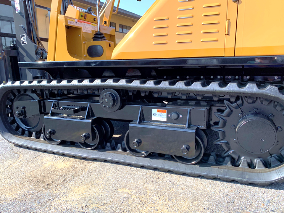 肉厚で、繋ぎ目のないゴムクローラは耐久性抜群‼開発から40年の経験とノウハウを生かした傑作です!ゴムクローラを動かしているのがHST(ハイドロ・スタティック・トランスミッション)システムです。油圧による駆動伝達装置は、滑らかでスムーズな動きを実現します。
