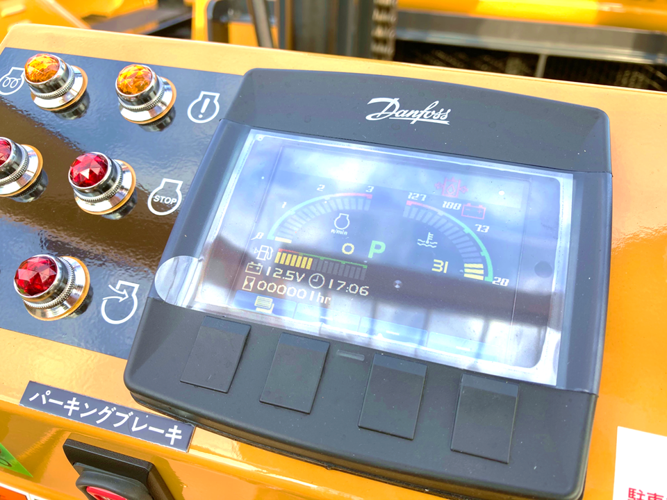 運転席正面に警告ランプ及び液晶モニタを集中配置。燃料残量、電圧、エンジン回転数計等の車両に係る各種ステータスや車両に異常があった際の警告ランプ点灯等が容易に視認できるようになりました。