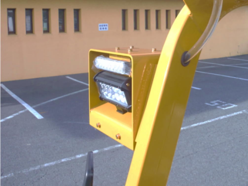 車両の左右2箇所にLED前照灯を配置し夜間や暗所での作業がより安全になりました。(右)