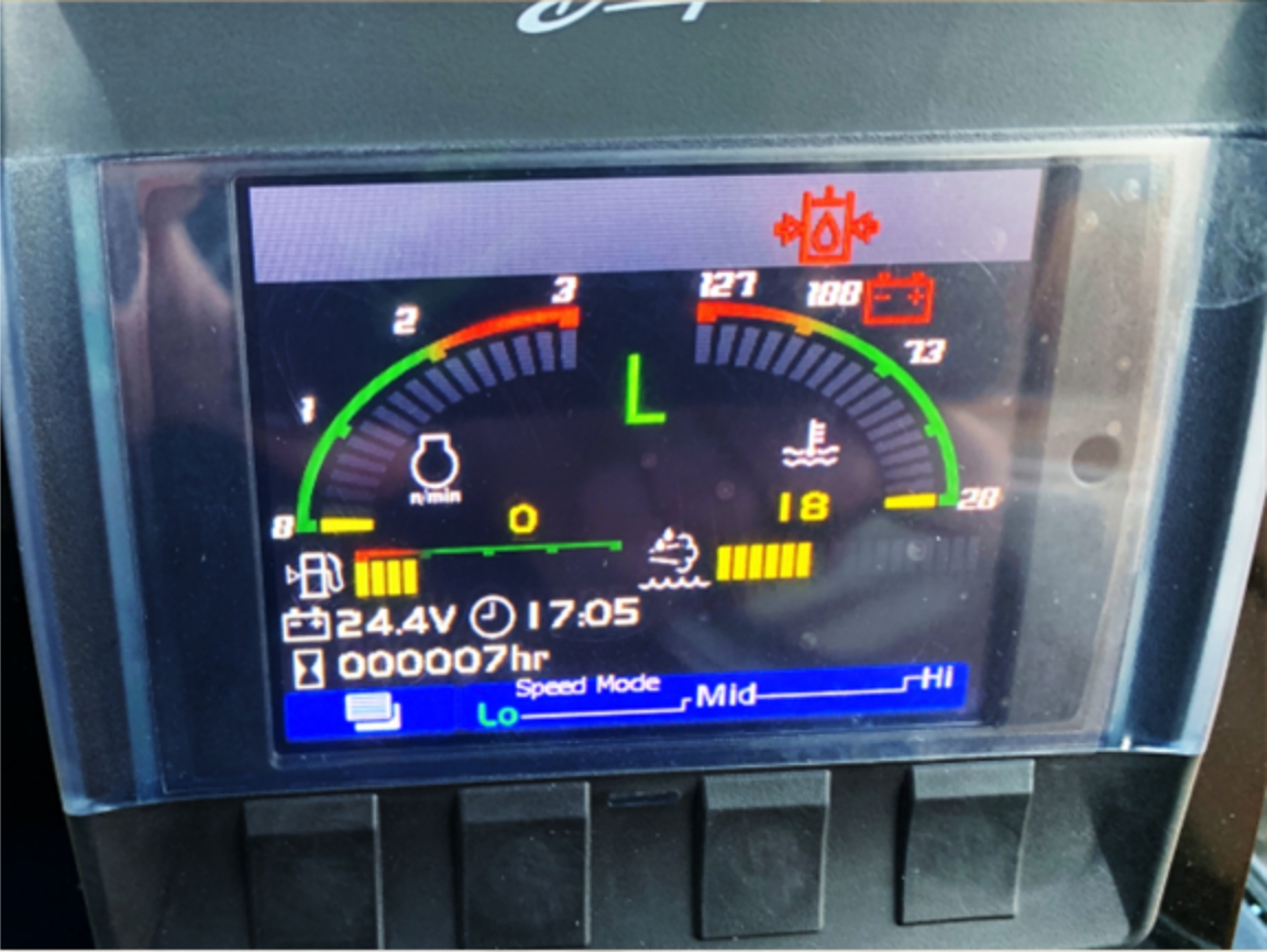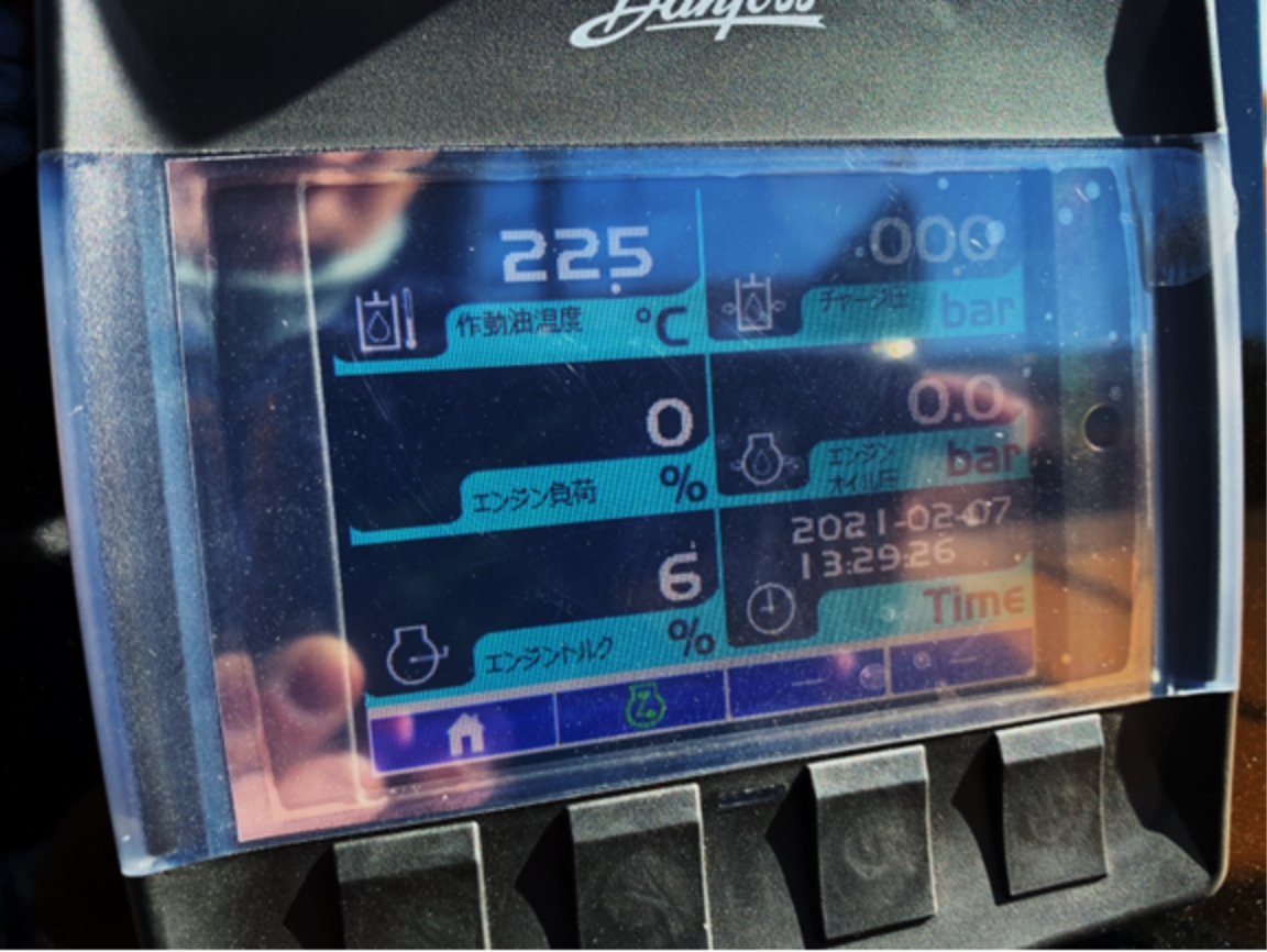 運転席右側に警告ランプ及び液晶モニタを配置。燃料残量、電圧、エンジン回転数計等の車両に係る各種ステータスや車両に異常があった際の警告ランプ点灯等が容易に視認できるようになりました。
