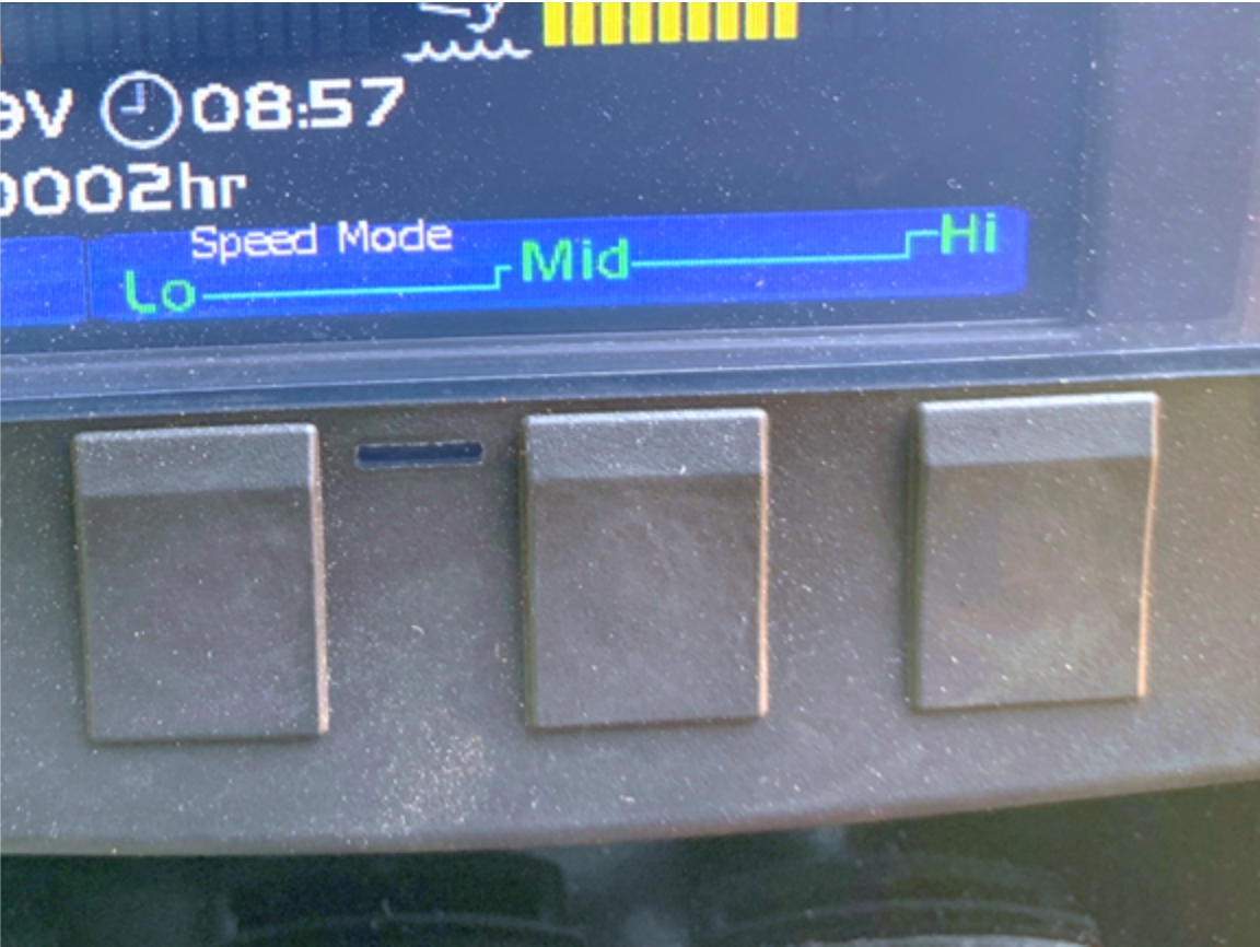 従来の高速・低速に加え、それぞれ3段階のスピードモードが選択できます。これにより高速走行はもちろん、安定した微速での走行も可能です。(右)