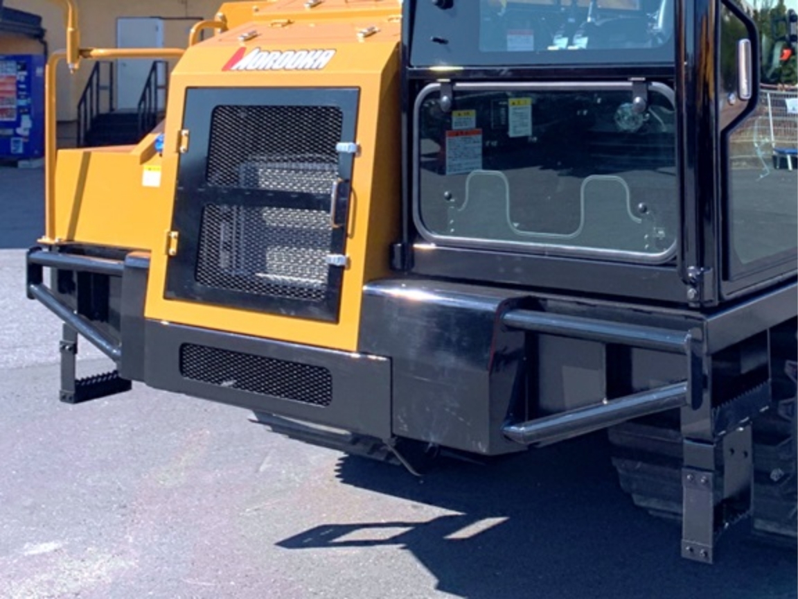 車両前部の左右には、取外しが容易で、過酷な現場での安全性・耐久性を兼ね備えた強化保護バンパーを標準搭載。(左)