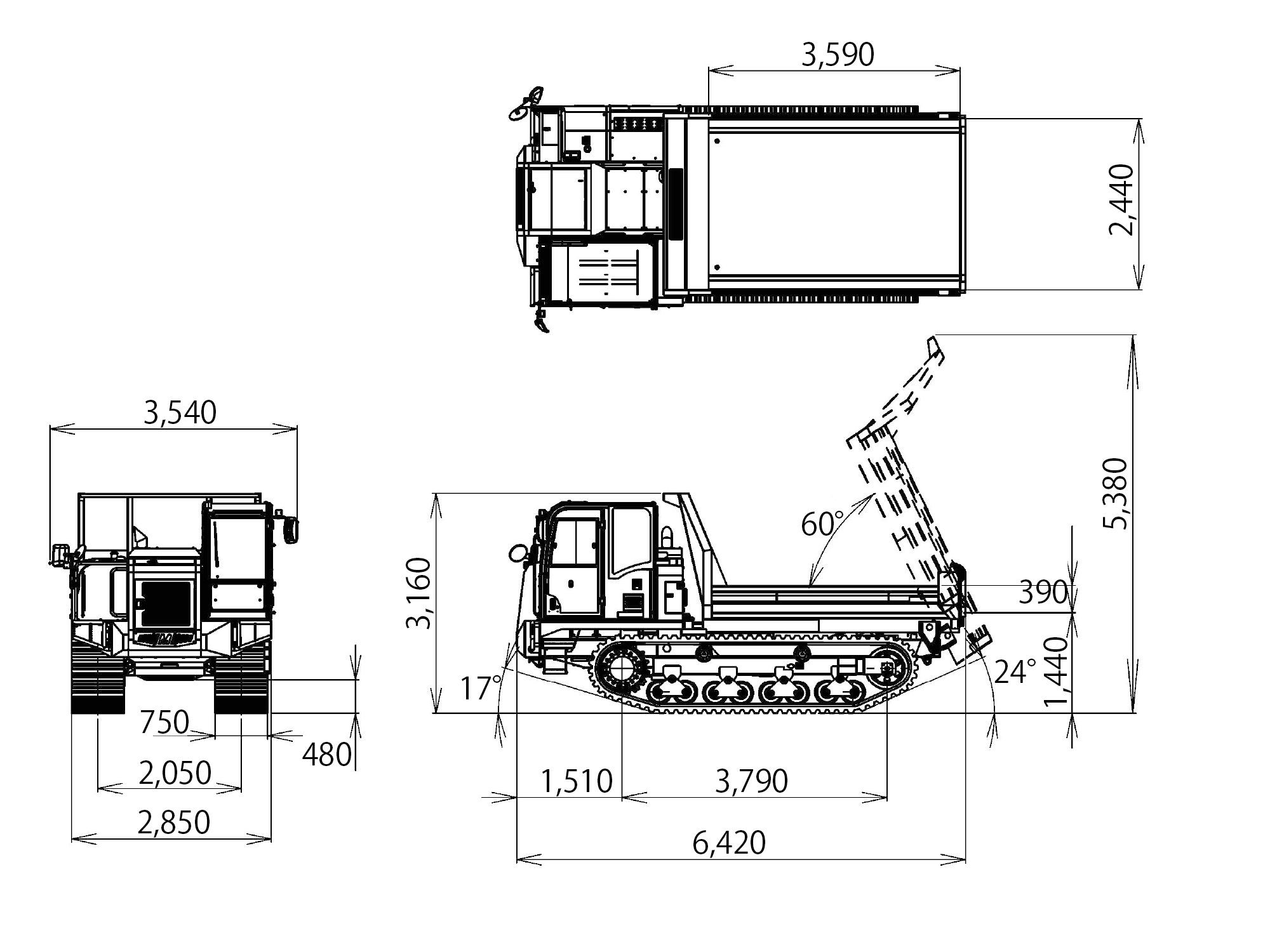 | 荷台寸法 長さ×幅×高さ | 3,590×2,440x390mm |