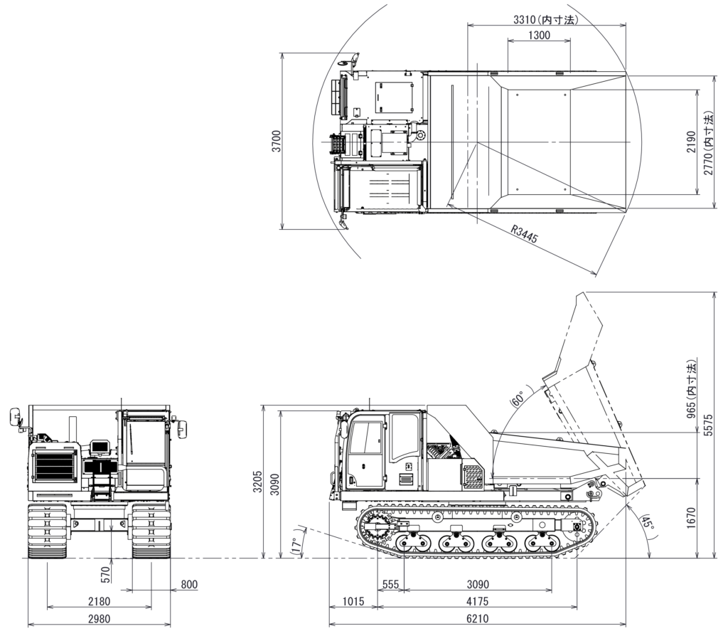 | 荷台寸法 長さ×幅×高さ | 3,310×2,770×965mm |