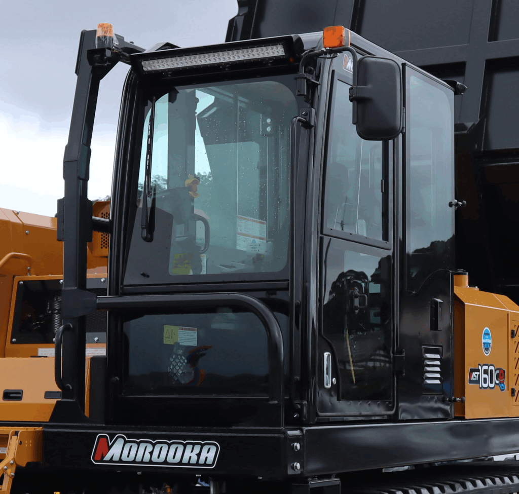 居住性・視認性の良いキャビンは、転倒時にオペレータを保護するROPS(転倒時保護構造)/FOPS(落下物保護構造)に対応、エアコンは標準装備となっています。