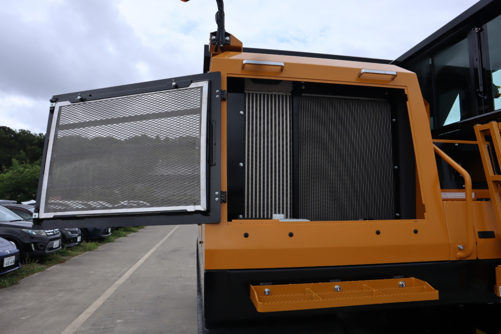 効率的な整備点検・メンテナンスを行えるように各機器を配置。開口部の大きいグリルにより点検・整備がスムーズに行え、メンテナンスのしやすい構造となっています。また、燃料タンク横に尿素タンクを配置することで同時に補給ができるデザインにしました。