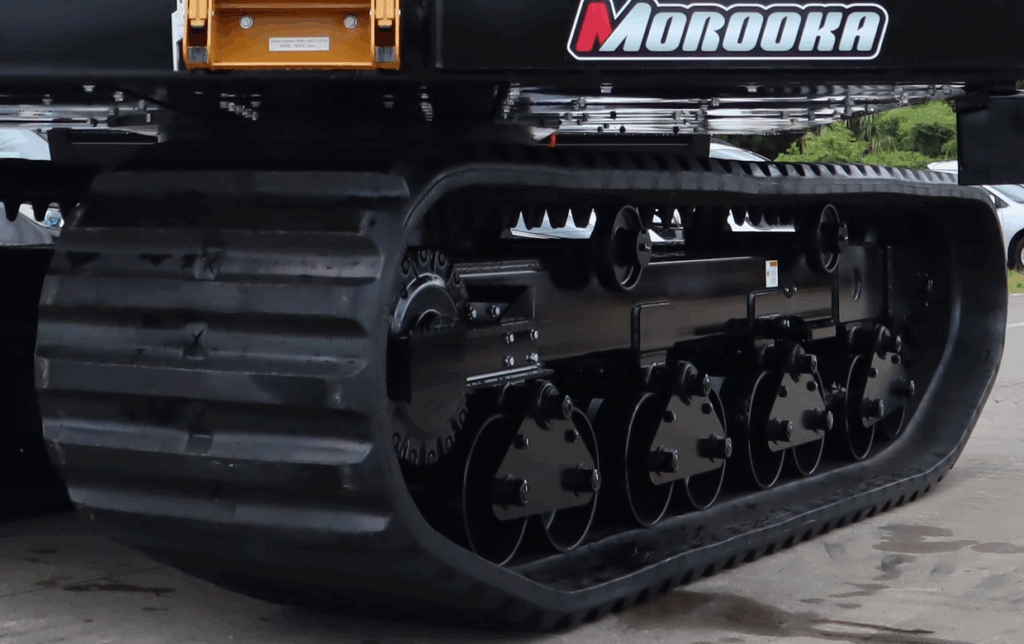 肉厚で、繋ぎ目のないゴムクローラは耐久性抜群‼開発から40年の経験とノウハウを生かした傑作です!ゴムクローラを動かしているのがHST(ハイドロ・スタティック・トランスミッション)システムです。油圧による駆動伝達装置は、滑らかでスムーズな動きを実現します。