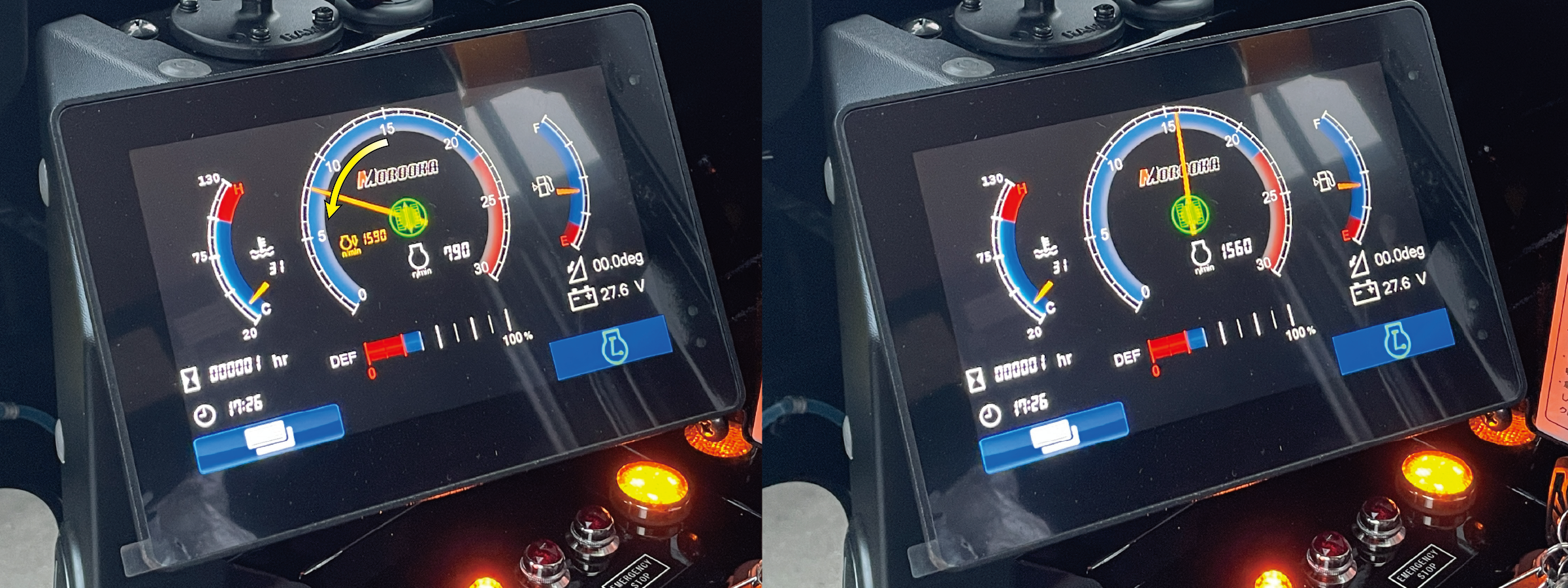 運転席右側に警告ランプ及び液晶モニタを配置。燃料残量、電圧、エンジン回転数計等の車両に係る各種ステータスや車両に異常があった際の警告ランプ点灯等が容易に視認できるようになりました。